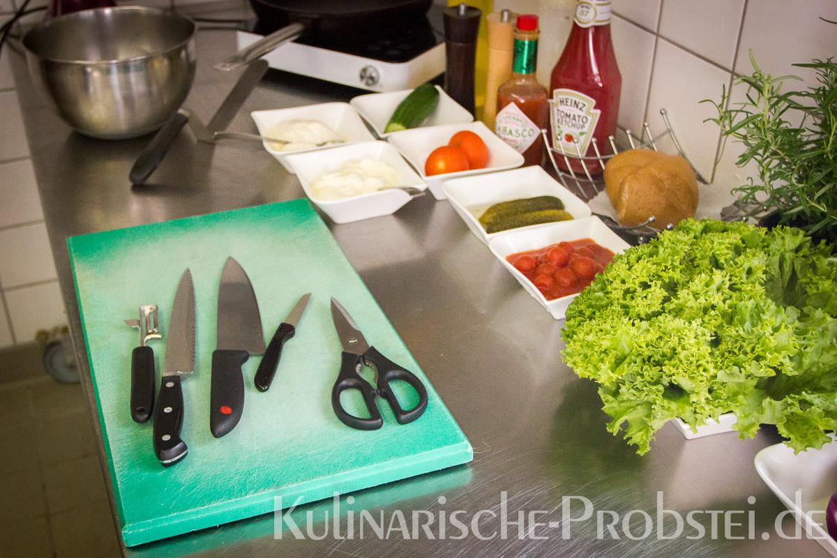 Hier sehen Sie die einzelnen Arbeitsschritte bei der Zubereitung des Schönburgers durch den damaligen Küchenchef Fynn Passick, der Ihnen auf dem letzten Foto auch das fertige Gericht präsentiert: