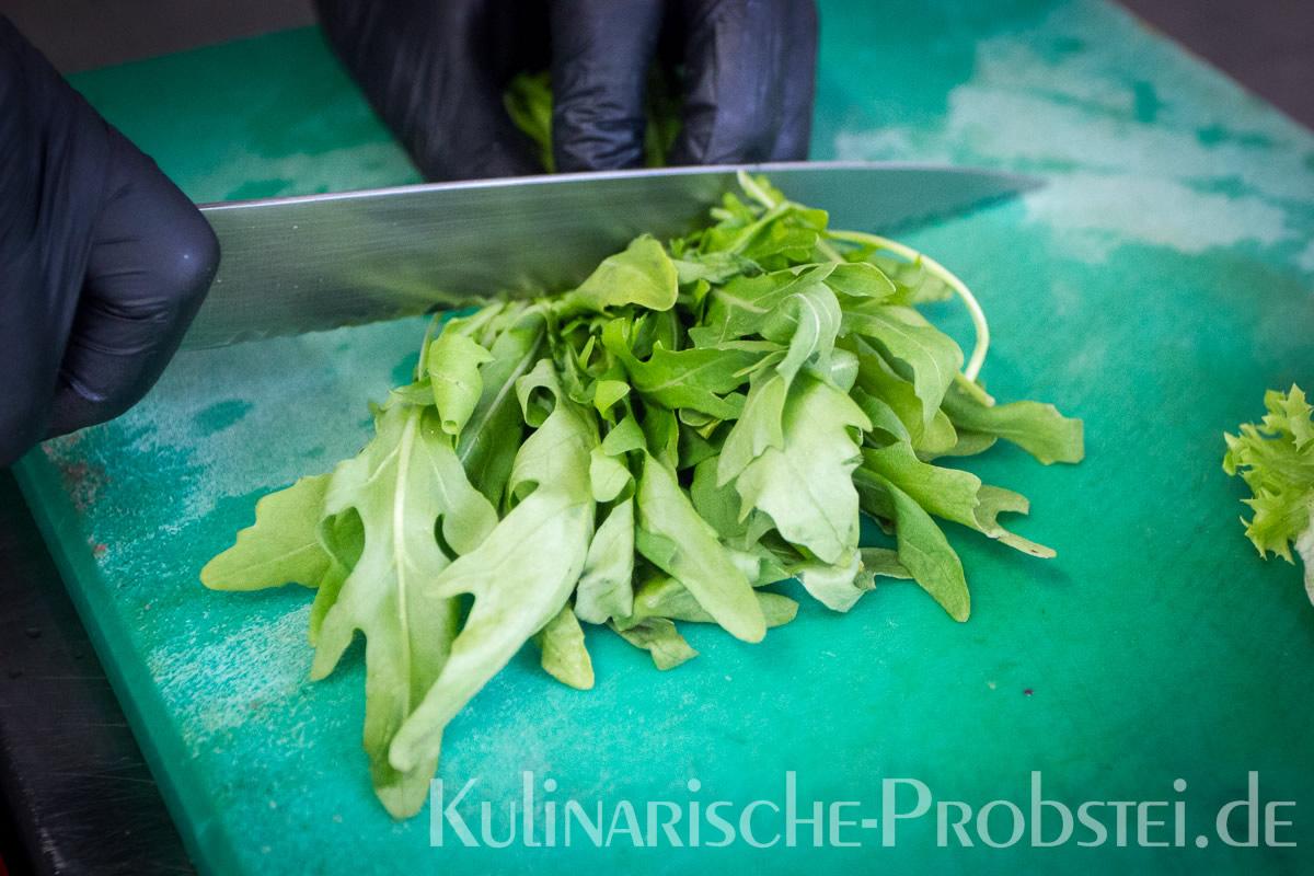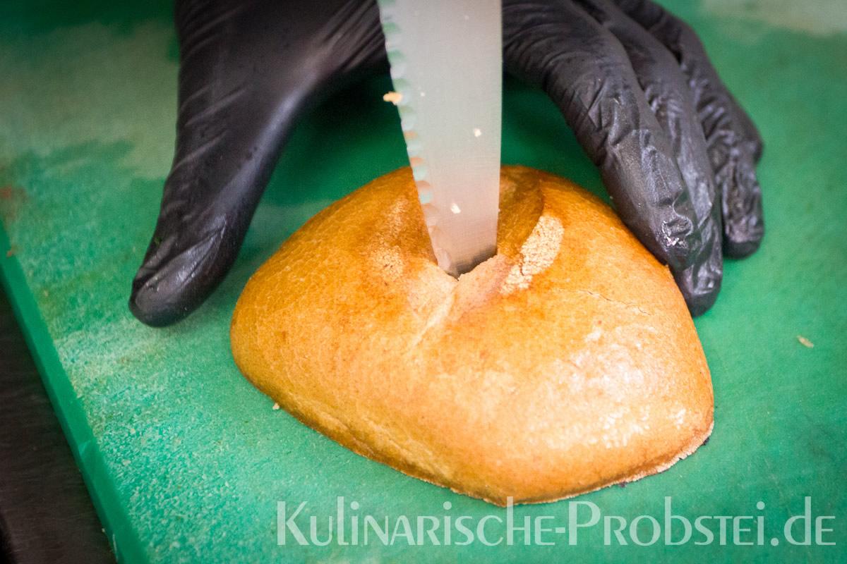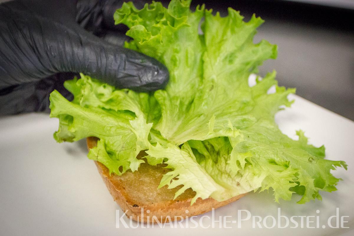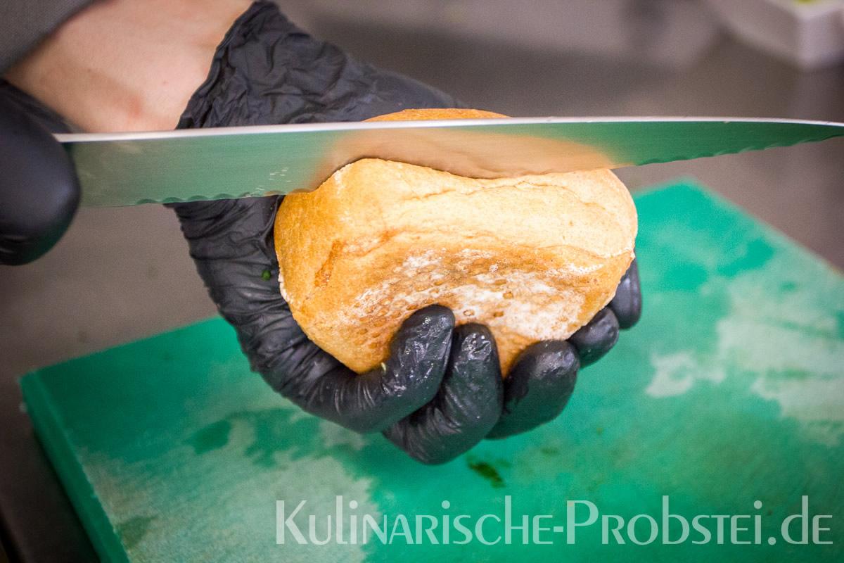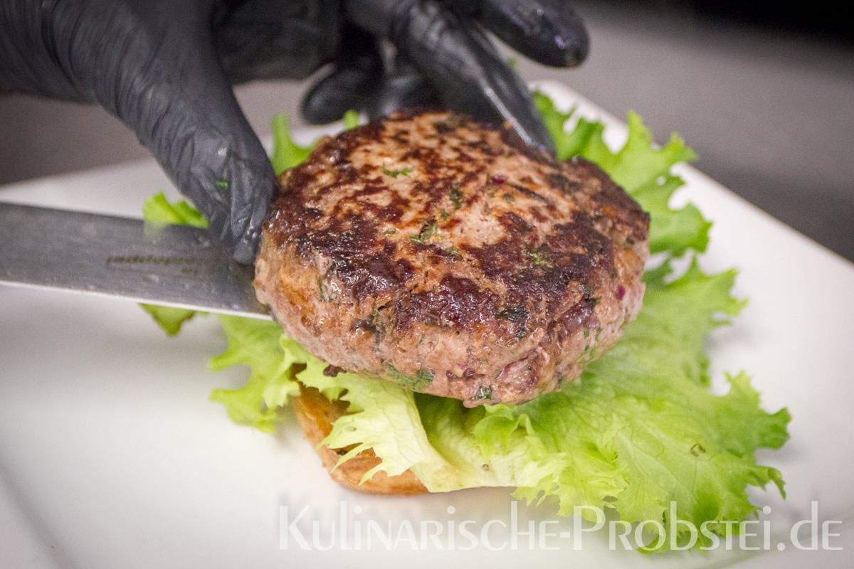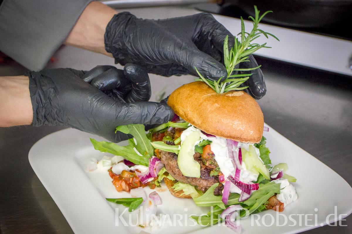 Hier sehen Sie die einzelnen Arbeitsschritte bei der Zubereitung des Schönburgers durch den damaligen Küchenchef Fynn Passick, der Ihnen auf dem letzten Foto auch das fertige Gericht präsentiert: