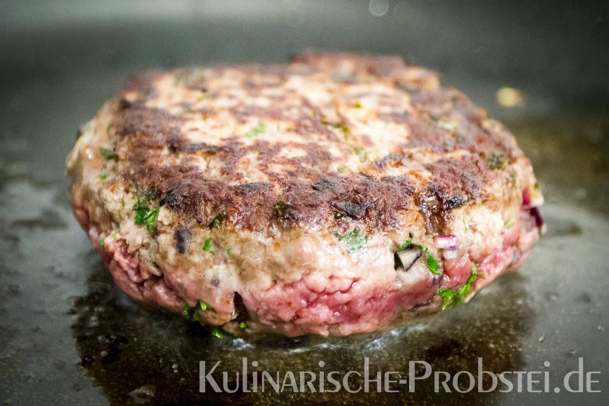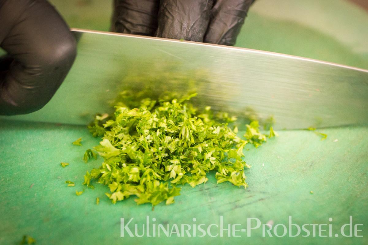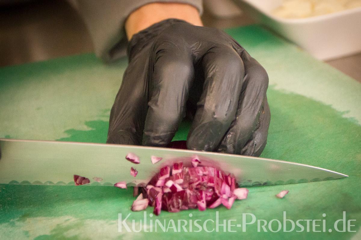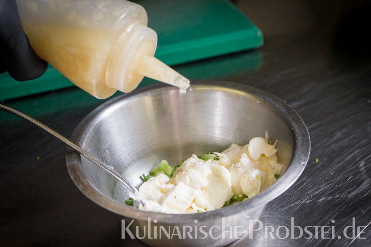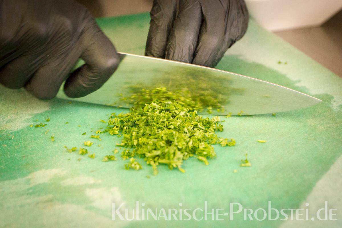 Hier sehen Sie die einzelnen Arbeitsschritte bei der Zubereitung des Schönburgers durch den damaligen Küchenchef Fynn Passick, der Ihnen auf dem letzten Foto auch das fertige Gericht präsentiert: