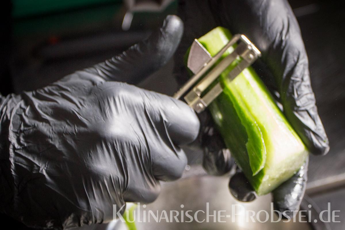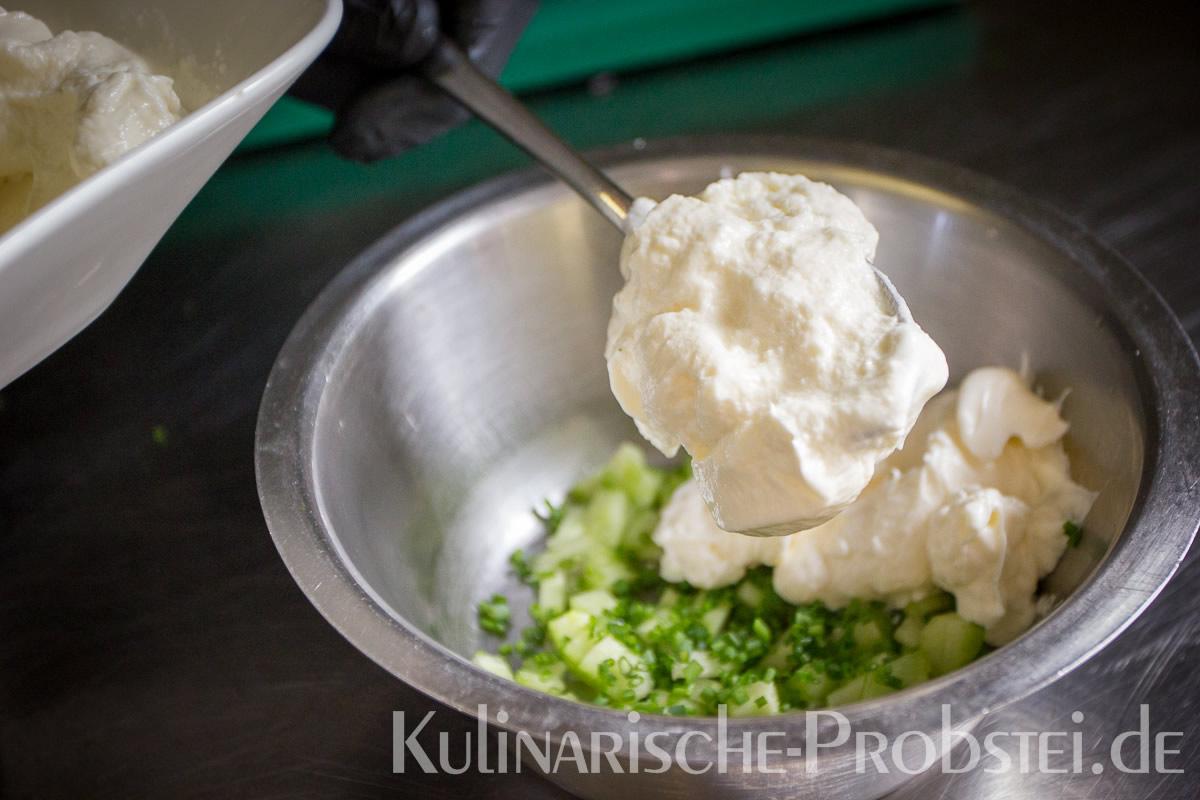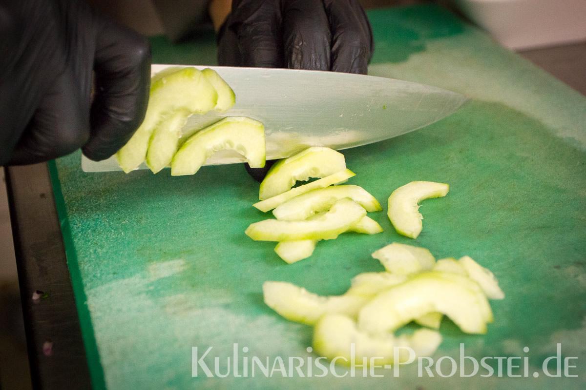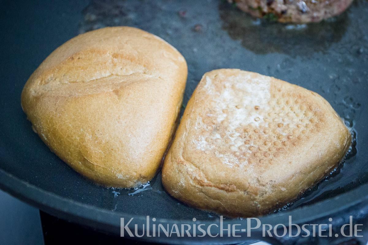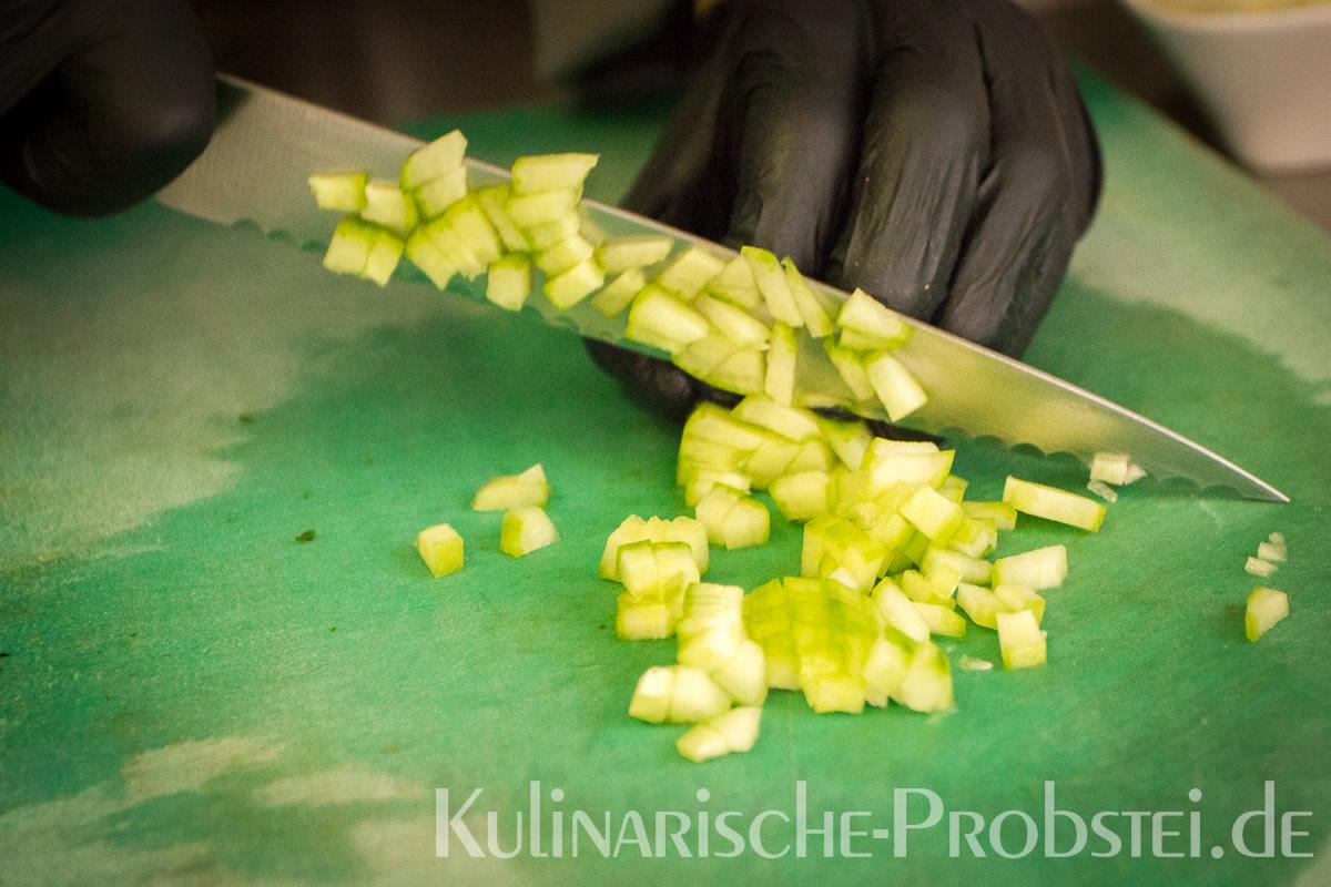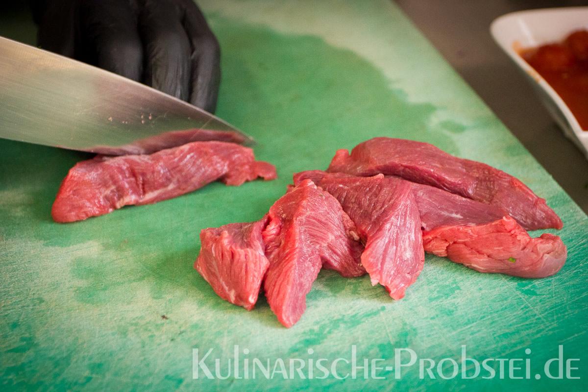 Hier sehen Sie die einzelnen Arbeitsschritte bei der Zubereitung des Schönburgers durch den damaligen Küchenchef Fynn Passick, der Ihnen auf dem letzten Foto auch das fertige Gericht präsentiert: